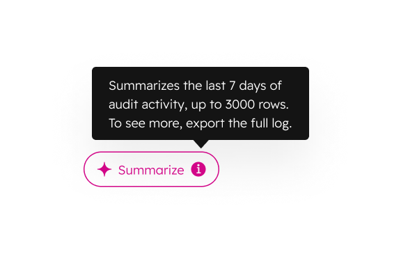 I added an info icon to the "Generate" button, which proactively explains the feature's scope (e.g., "Summarizes the last 7 days, up to 3,000 entries"). This manages expectations from the start.